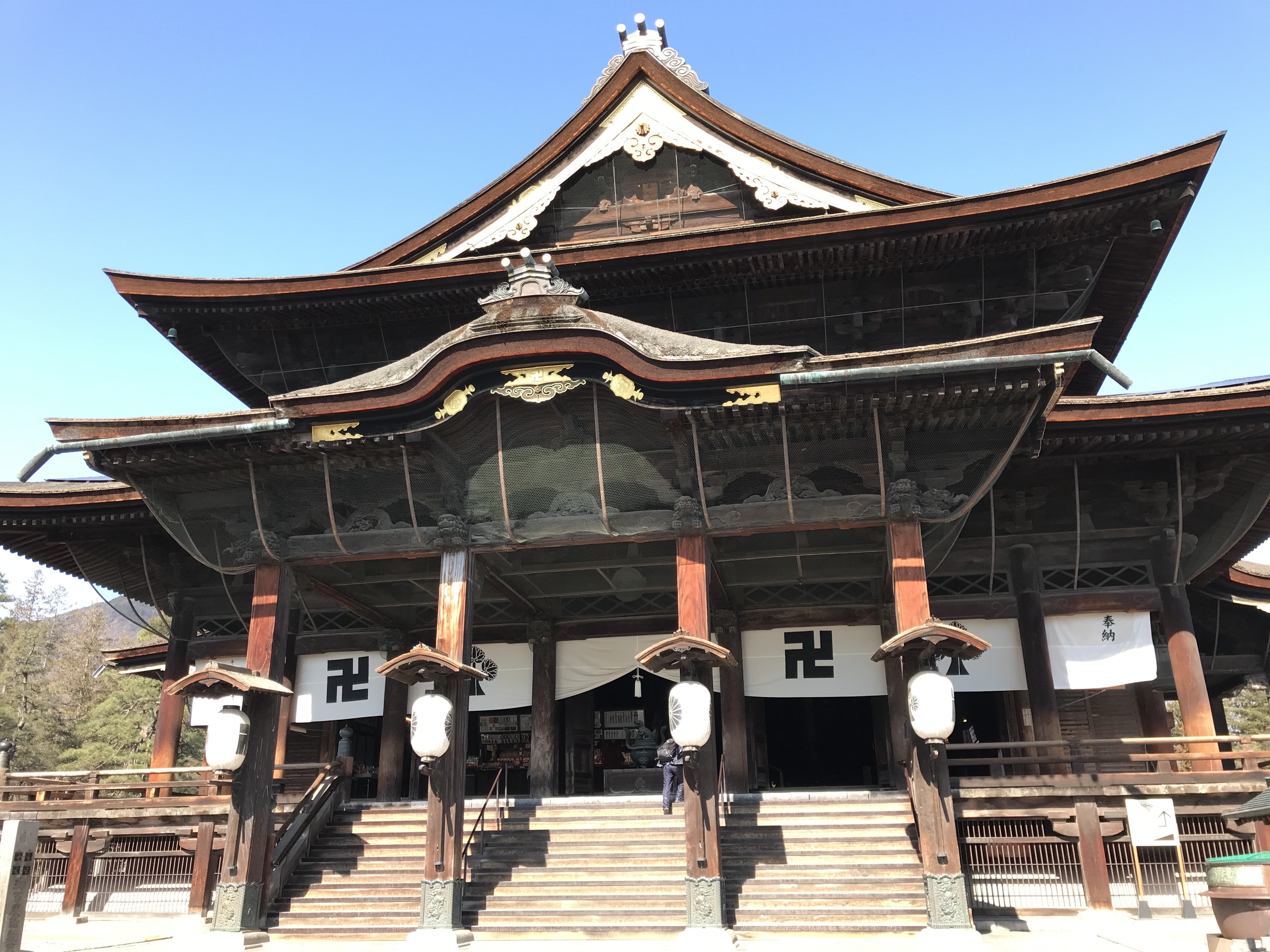 旅行先の長野。「牛にひかれて善光寺参り」と言われるくらいですから、ワイドビューしなのに乗ったわたくしも善光寺参りをいたします。